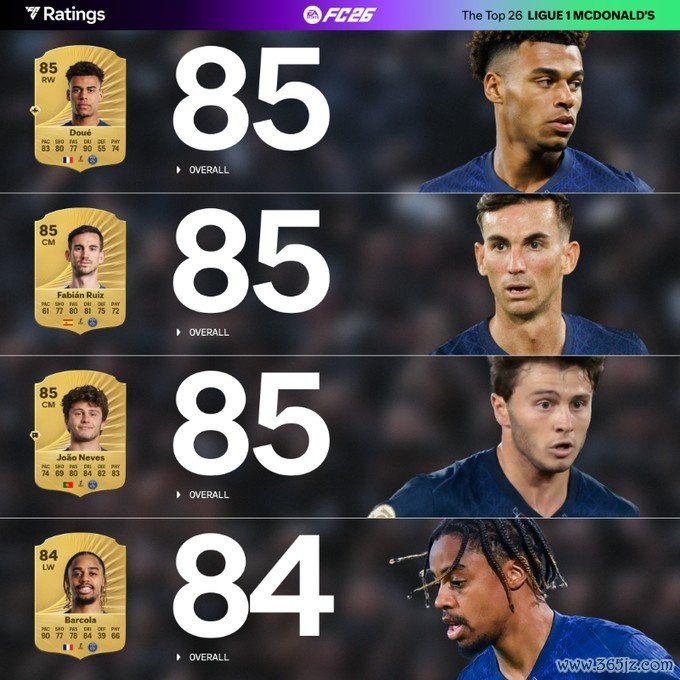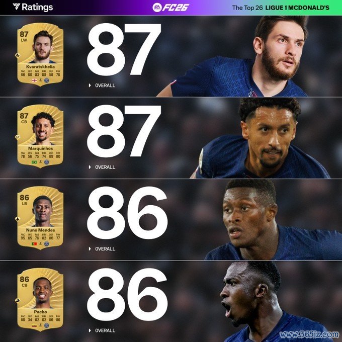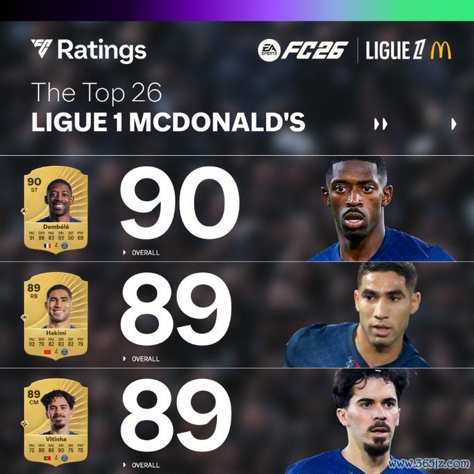 FC26官方法甲球员评分榜:登贝莱90最高,阿什拉夫和维蒂尼亚89