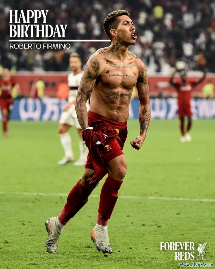 利物浦祝菲尔米诺34岁生日快乐,效力期间出战362场111球76助