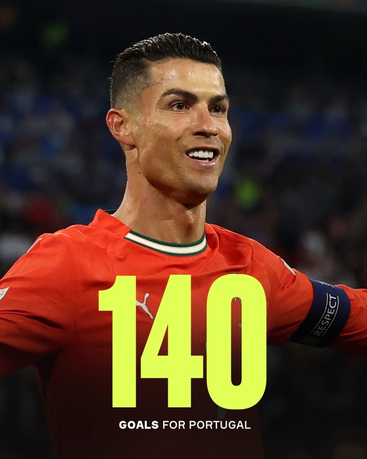 9月7日讯 C罗在对阵亚美尼亚的赛事 中连进两球,已经打进140个国家队得分 。