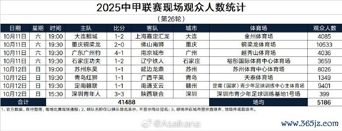 2025中甲职业联赛 现场观赛人群 人数统计(第26轮)