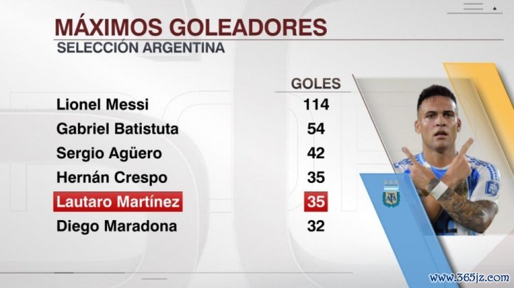35球!劳塔罗阿根廷队得分 数追平克雷斯波,并列队史第四