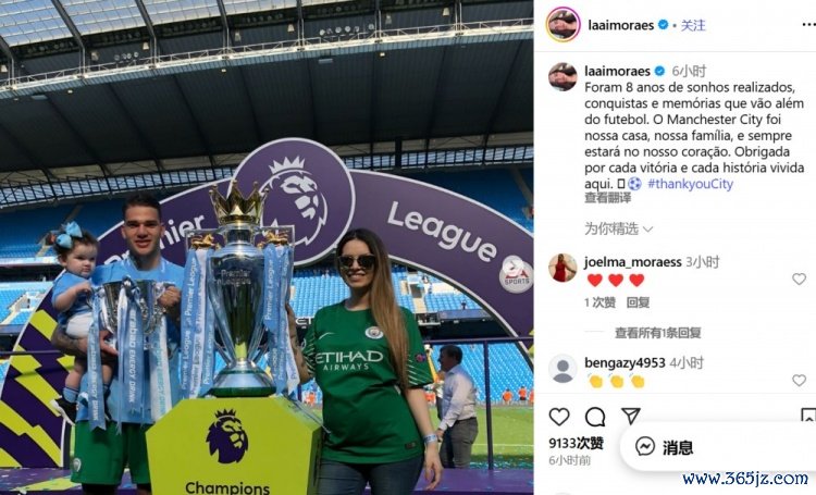 埃德森妻子告别曼城:这是实现理想 的8年,曼城是我们的家