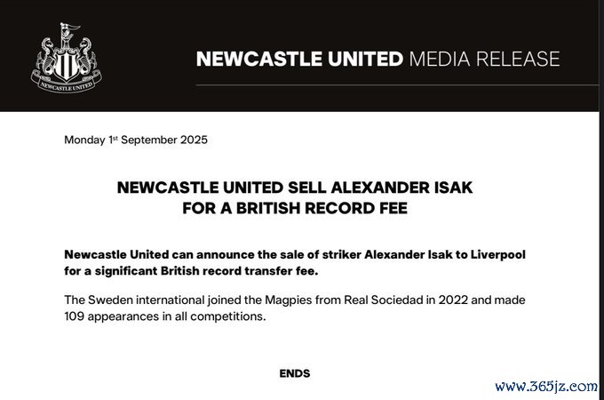 纽卡伊萨克公告仅37字,记者:这充分说明了球队如何看待他的行为