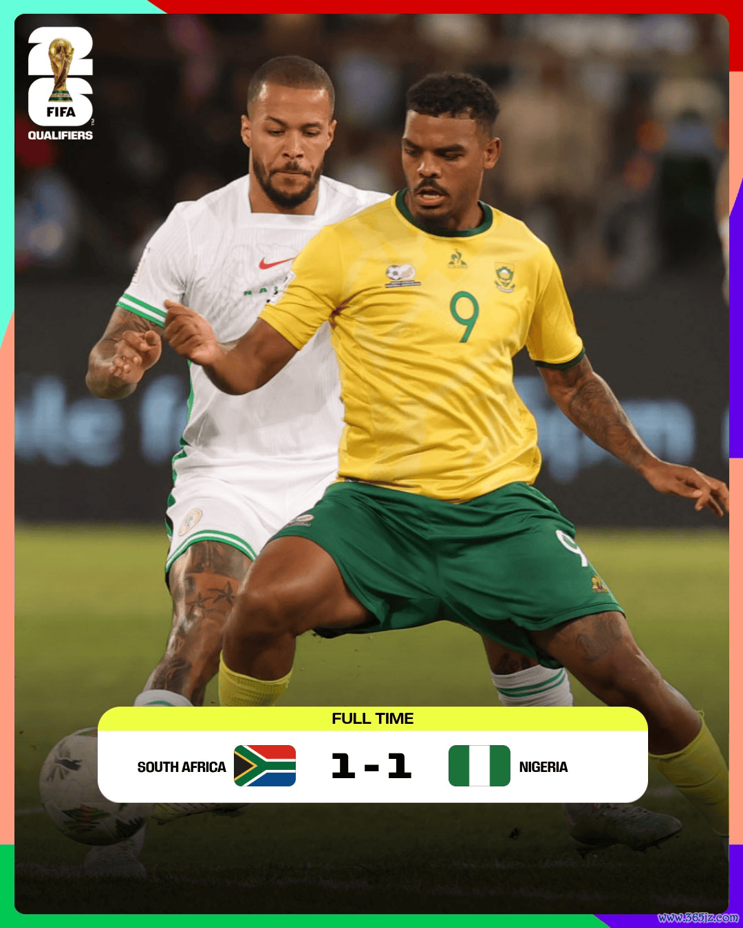 虎扑09月10日讯在刚刚结束的一场世界杯赛 非洲区预选赛中,C组领头羊南非坐镇主场作战 ,1-1战平了来访的尼日利亚。