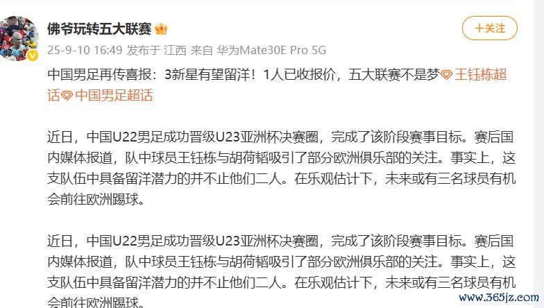 当球迷们还在为这场默契度 球争论不休时,一个更劲爆的消息曝出,王钰栋、胡荷韬这两位国足新星,居然被多家欧洲豪门俱乐部盯上了!