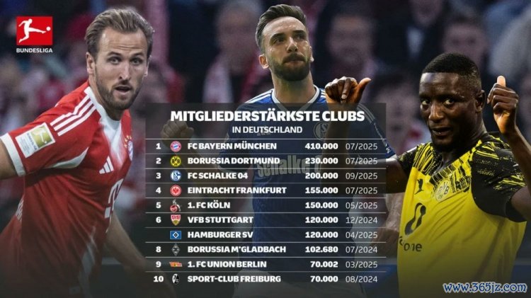 德国俱乐部注册会员数量榜:拜仁41万居首,多特、沙尔克二三位