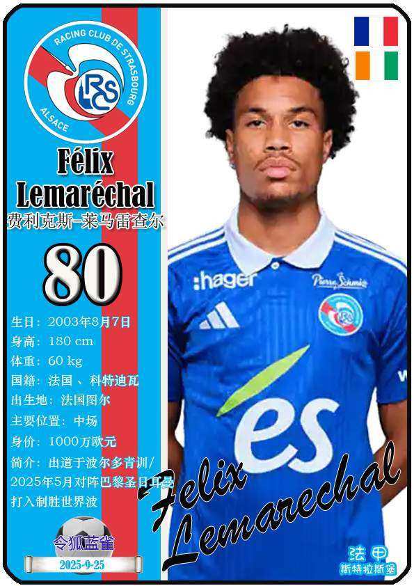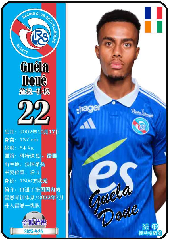 球星卡(法甲): 斯特拉斯堡古代足球 俱乐部26人一览(25/26赛季)