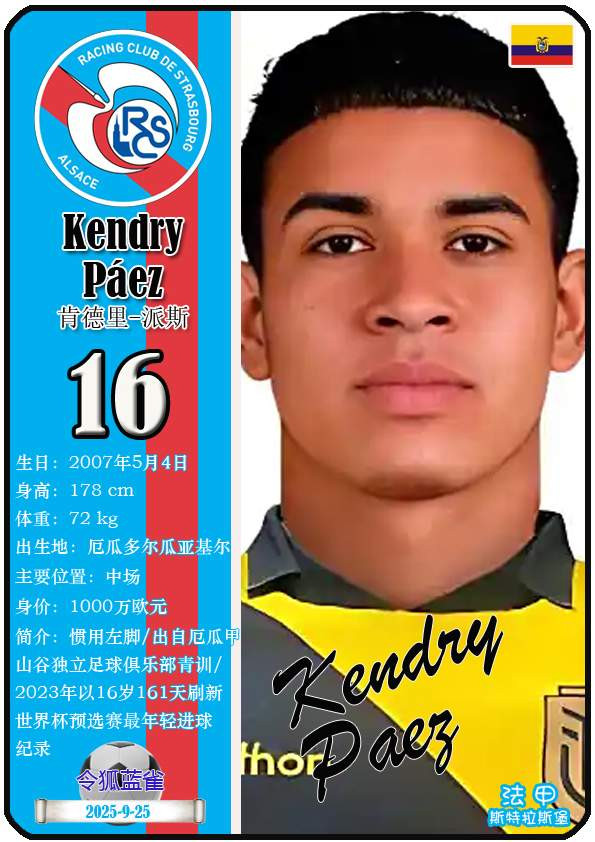 法甲斯特拉斯堡古代足球 俱乐部的前身讷多夫古代足球 俱乐部成立于1906年,距今已有119年历史。截至2025年9月26日,球队主指导教练员是利亚姆-罗西尼尔,巴黎圣日耳曼队内拥有球员伊曼纽尔-埃梅加、潘尼切利、伊斯梅尔-杜库雷等。本期以球星卡的形式展示目前法甲斯特拉斯堡古代足球 俱乐部的26名球员(按运动活动 服 号码排序):